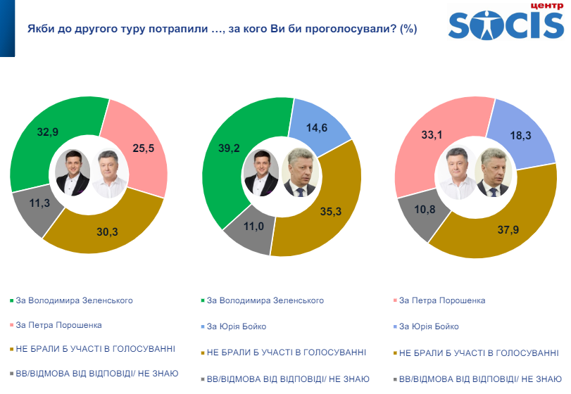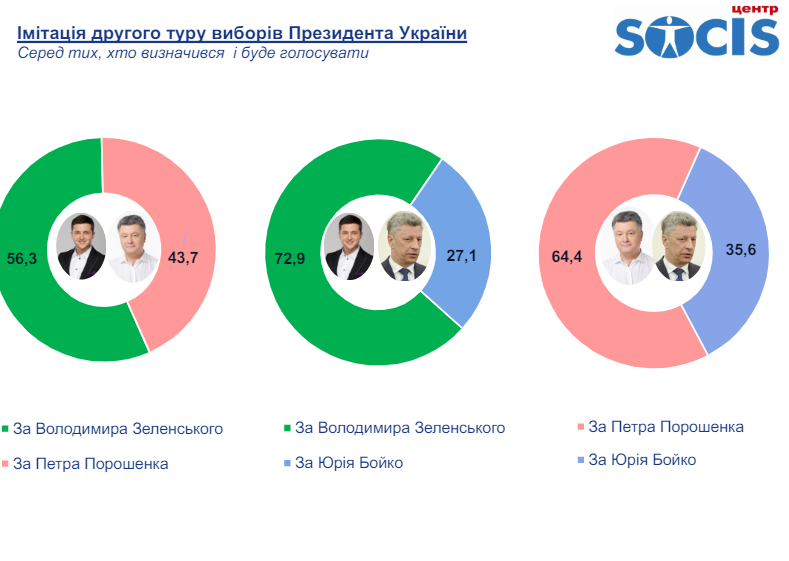 У ситуації, якби у другому турі змагалися Зеленський і Бойко, діючий президент набрав би 72,9% голосів, Бойко - лише 27,1%.