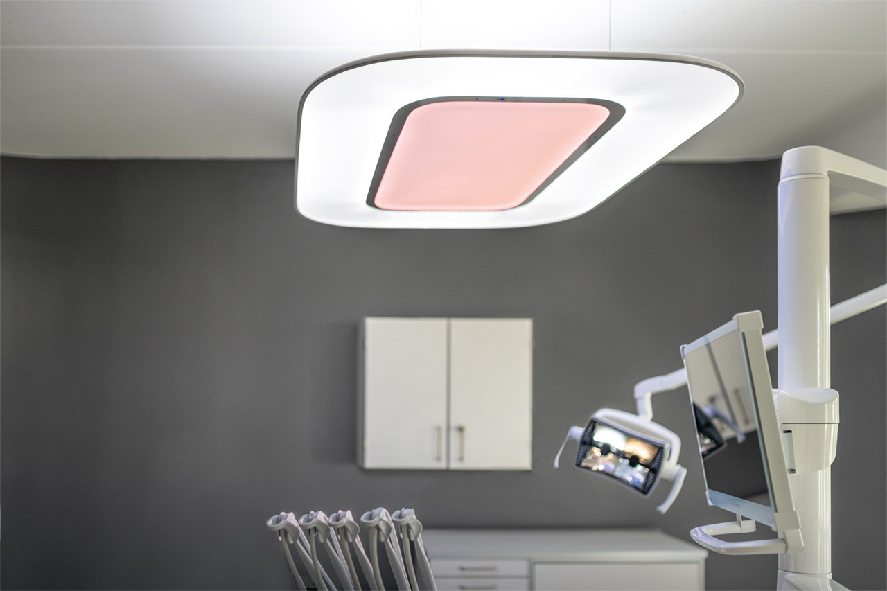 - Безтіньовий стоматологічний світильник можна легко позиціонувати для оптимального освітлення робочої зони.