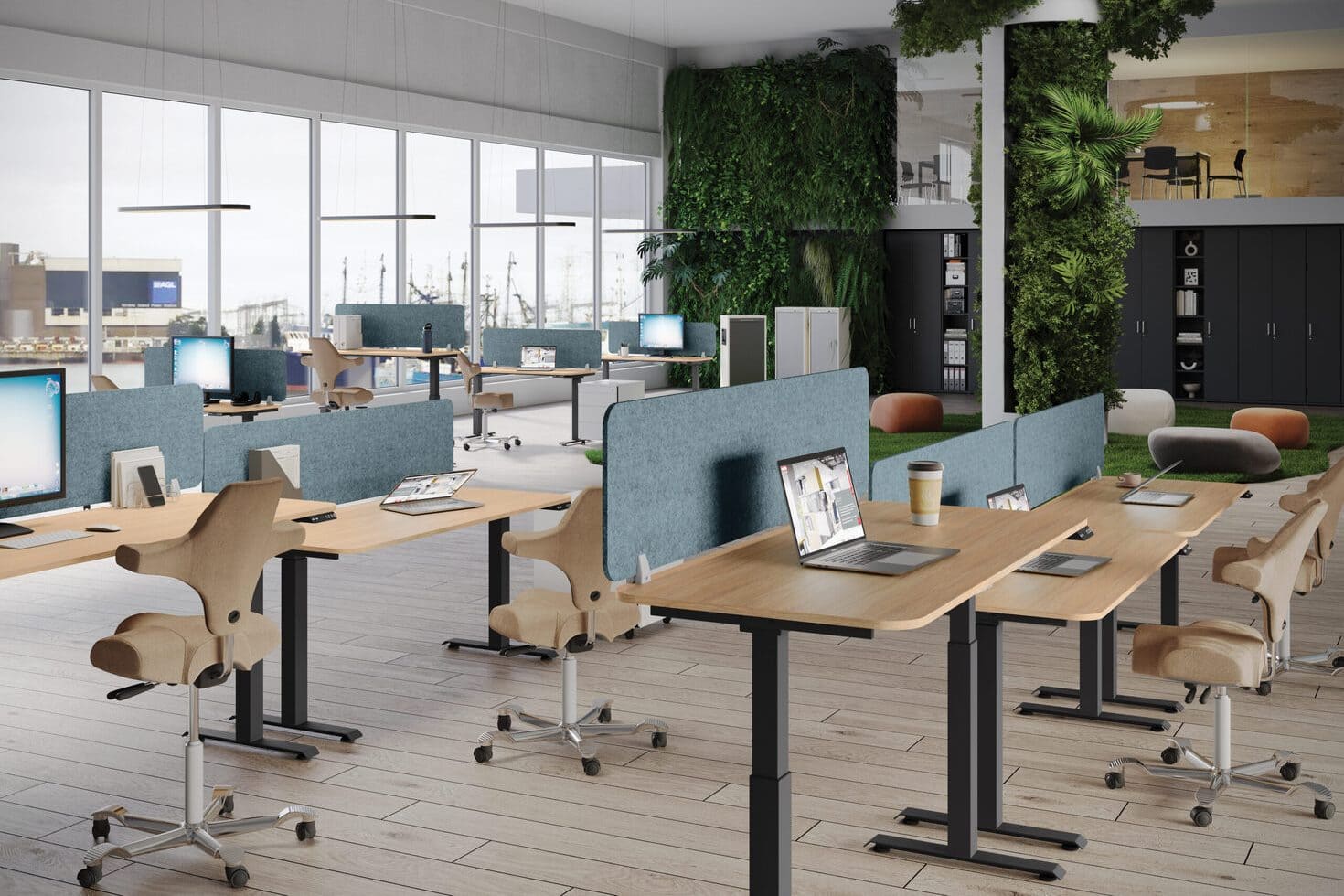 - Функціональність – модульні меблі, які можна легко налаштувати, а також зони відпочинку підвищують ефективність та сприяють релаксації, а офісні перегородки забезпечують конфіденційність та шумоізоляцію.