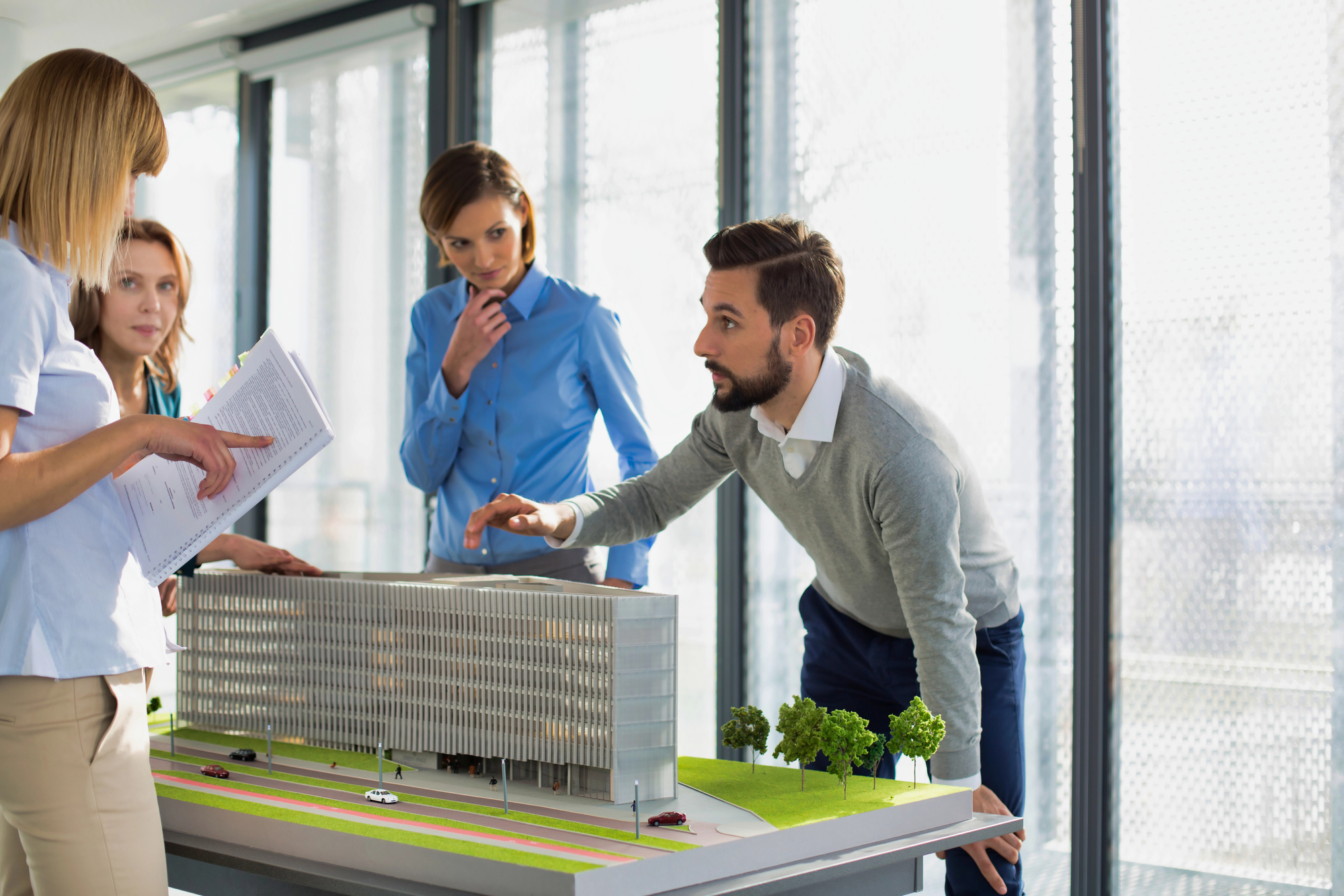 На початковому етапі архітектурне бюро проводить дослідження території, аналізує містобудівні обмеження, особливості ділянки, транспортну доступність та потоки людей. У комерційних об’єктах (офіси, ТРЦ, логістичні склади, готелі) дуже важливо забезпечити зручне зонування, ефективне розміщення технічних комунікацій та інженерних мереж, передбачити можливість масштабування або адаптації під зміну потреб бізнесу. Бюро працює в тісному зв’язку з інвестором, економістами та консультантами для визначення техніко-економічного обґрунтування (ТЕО).