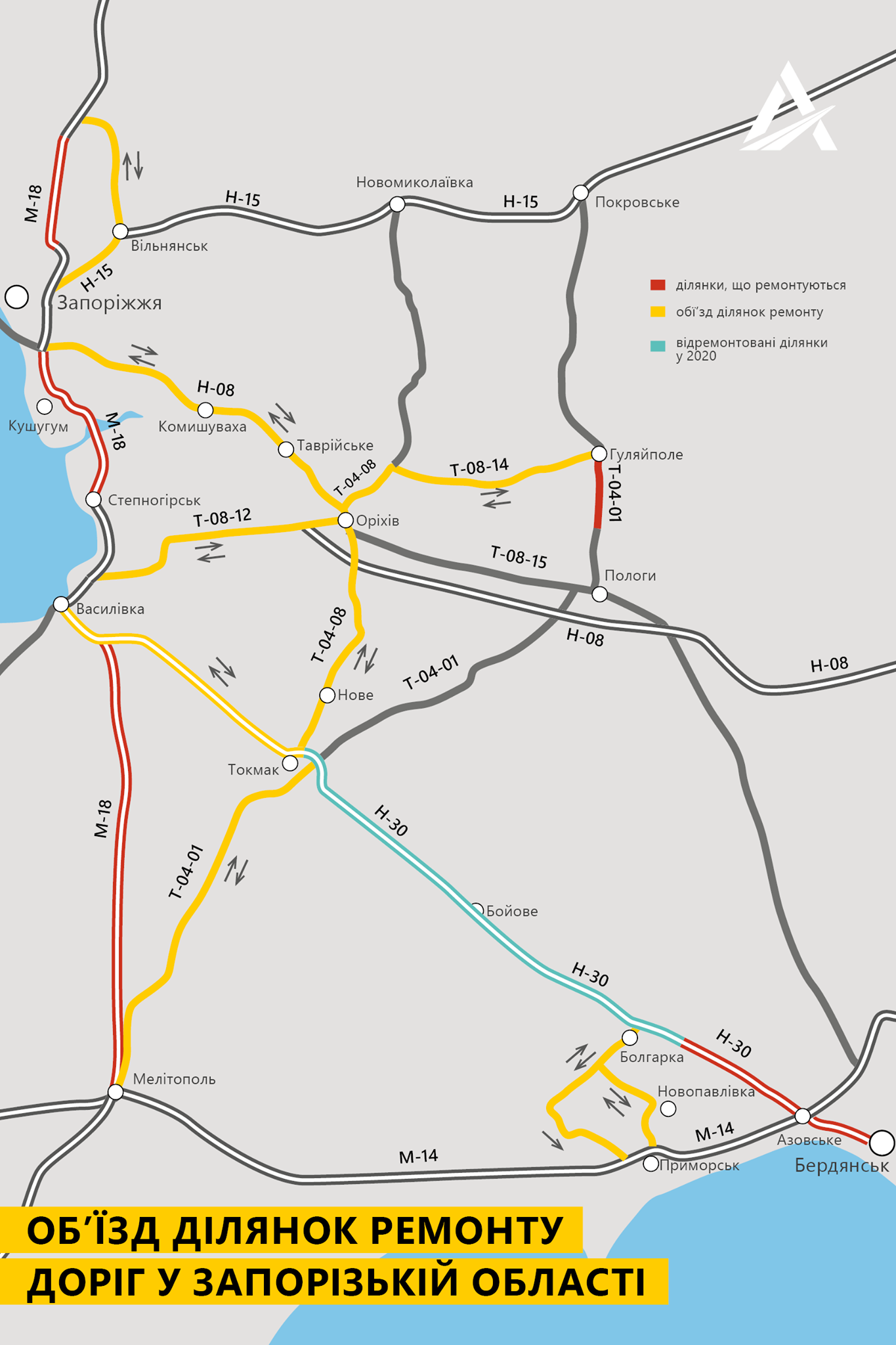 Служба автомобільних доріг розробила карту, на якій показані ділянки ремонту та маршрути об'їзду. Водіїв, які прямують до моря, просять з розумінням ставитися до незручностей і планувати свої маршрути з урахуванням цієї інформації.