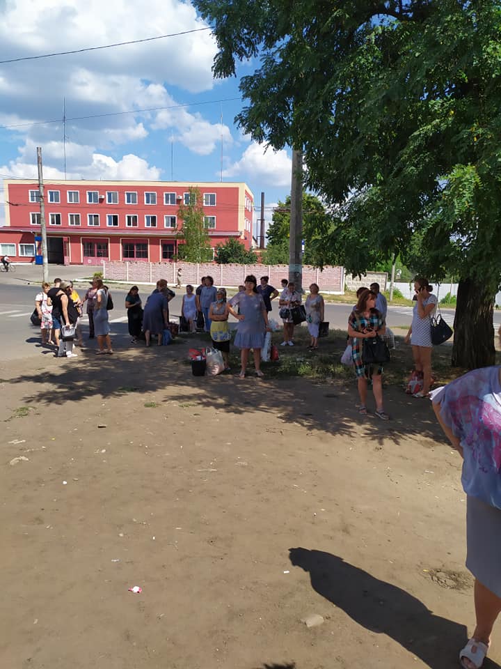 "Ось така черга на маршрут з Лисичанська на ГТВ о 12:30 дня. Стоять дітки, літні люди і чекають маршруток, які стоять порожніми на ГТВ", - пише автор поста.