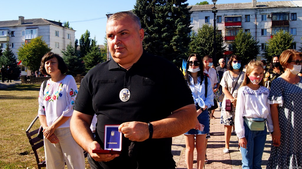 Також Олександр Сергійович поділився своїми вражання від міста та його мешканців. «Шановні лисичани! Впевнений, що тільки спільними зусиллям ми зможемо змінити наше місто і вже скоро ці зміни відчує кожен», — підсумував очільник міста і вручив Знак пошани бійцю батальйону Луганськ 1 ім. Героя України Сергія Губанова Роману Алексєєнку.