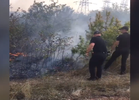Патрульні поліцейські допомагали співробітникам ДСНС гасити горіння сухої трави у Лисичанську в районі Березово.