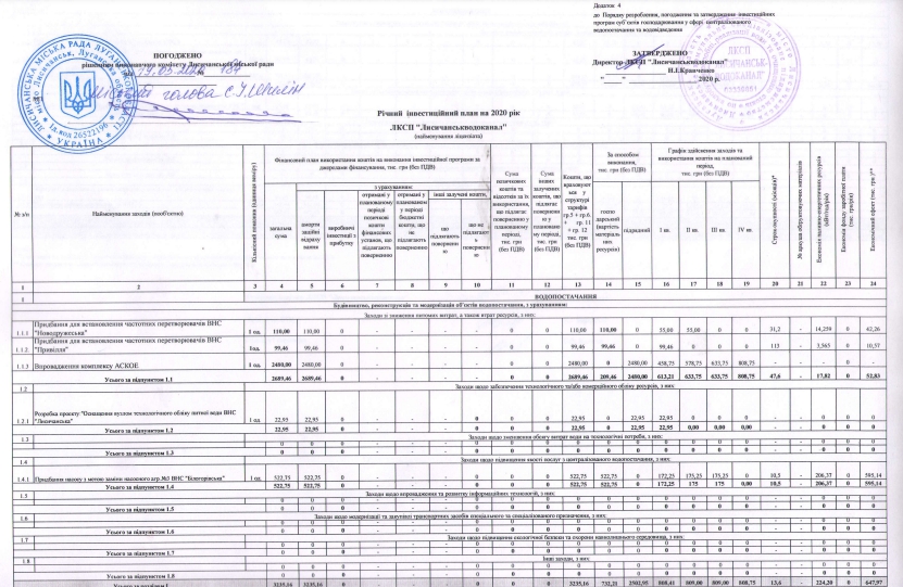 Заявки для участі у відкритому обговоренні, зауваження та пропозиції до проекту інвестиційної програми на 2020 рік водоканал просить подавати за адресою: вул. В. Сосюри, 168, м Лисичанськ, Луганська обл., 93106, або на електронну адресу: [email protected].