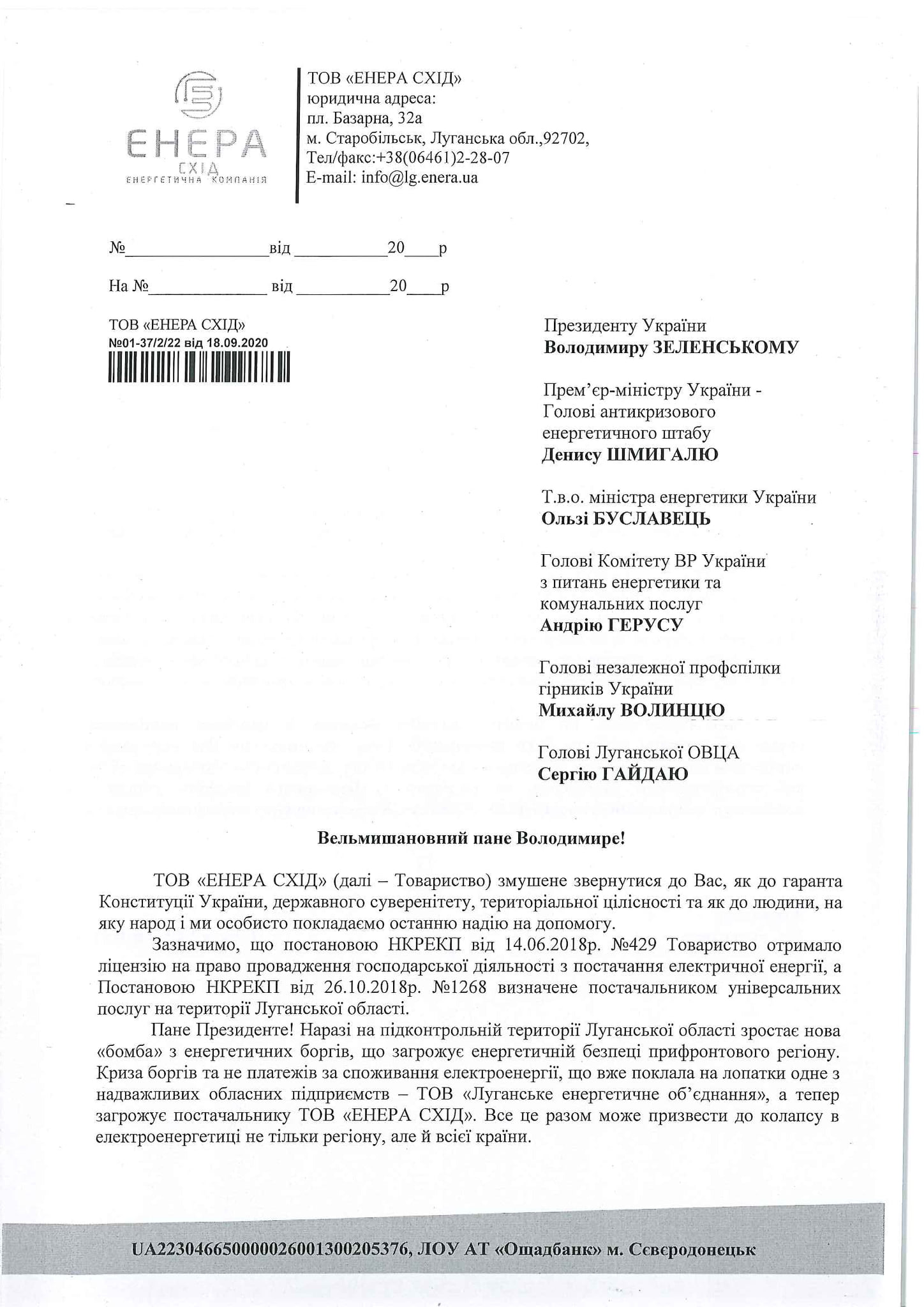 Компанія «ЕНЕРА СХІД» вчергове звернулася до Президента України Володимира Зеленського з проханням втрутитися та не допустити колапсу в електроенергетиці.