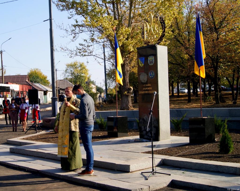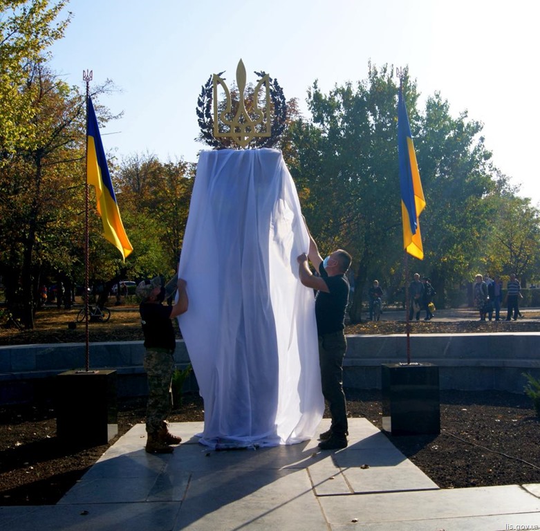 Сьогодні, 14 жовтня, з нагоди Дня захисника України у парку Лисичанського міського Палацу культури відбулося урочисте відкриття пам’ятника добровольцям антитерористичної операції.