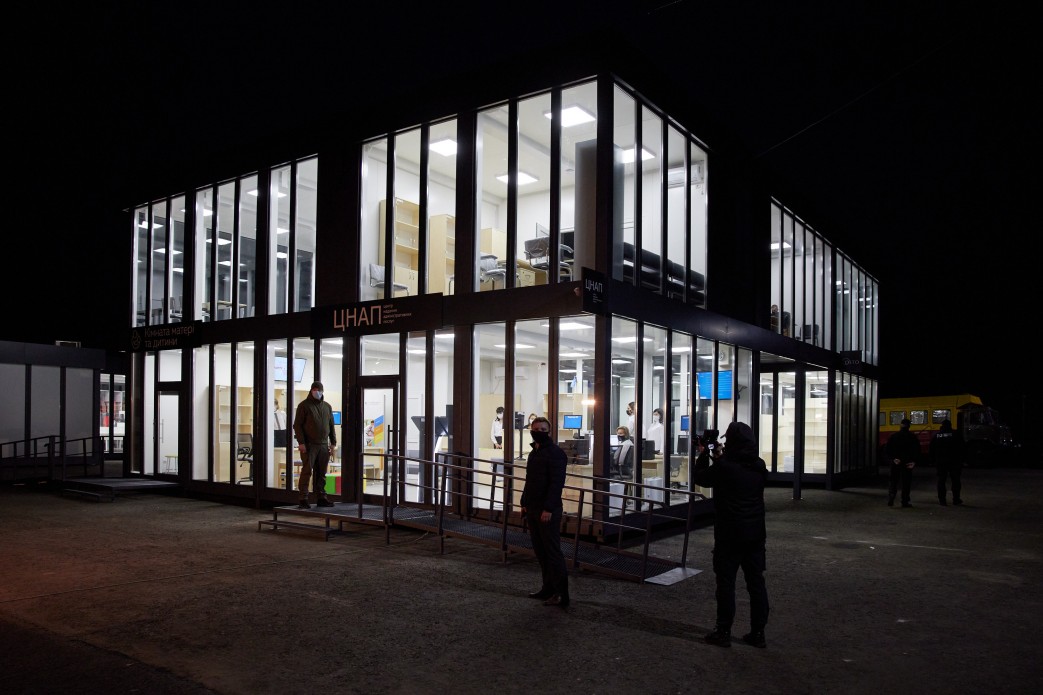 «Це дуже сучасний КПВВ, дуже швидко побудували ЦНАП, який надає 88 адміністративних послуг, що дуже важливо для всіх громадян України, для цивільних людей, які перебувають на нашій стороні та на тимчасово окупованих територіях», – зазначив Президент.