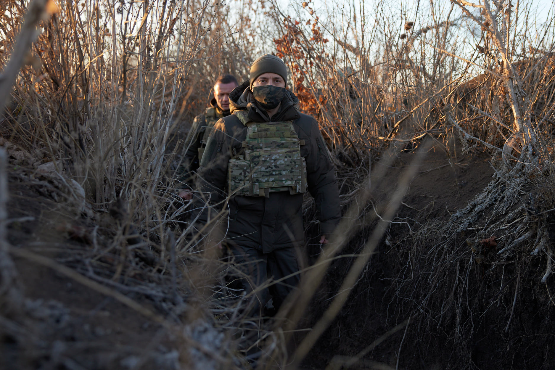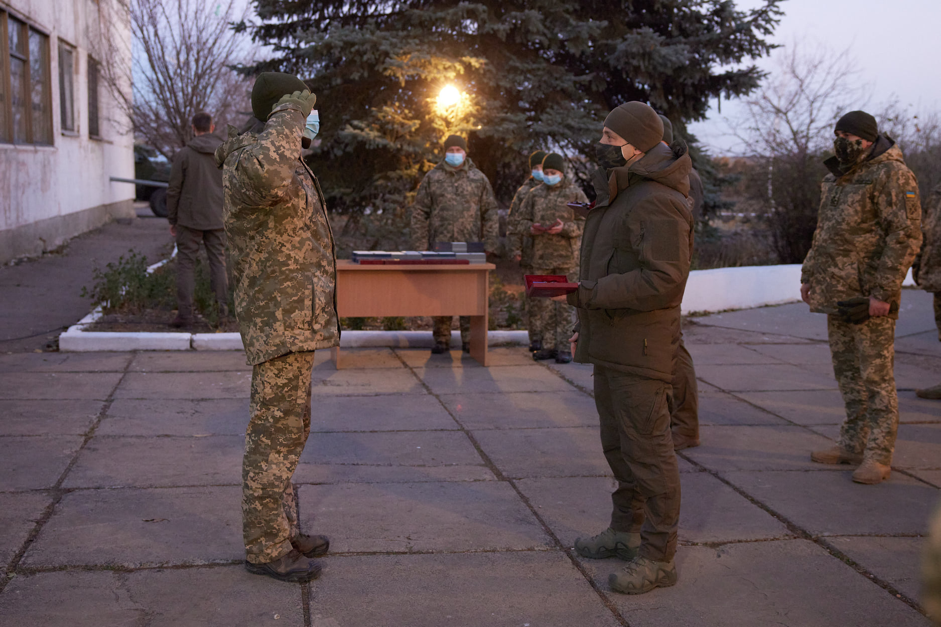 У День Збройних сил України Президент Володимир Зеленський зустрівся з військовослужбовцями на передовій, у зоні проведення Операції об’єднаних сил у Донецькій області.