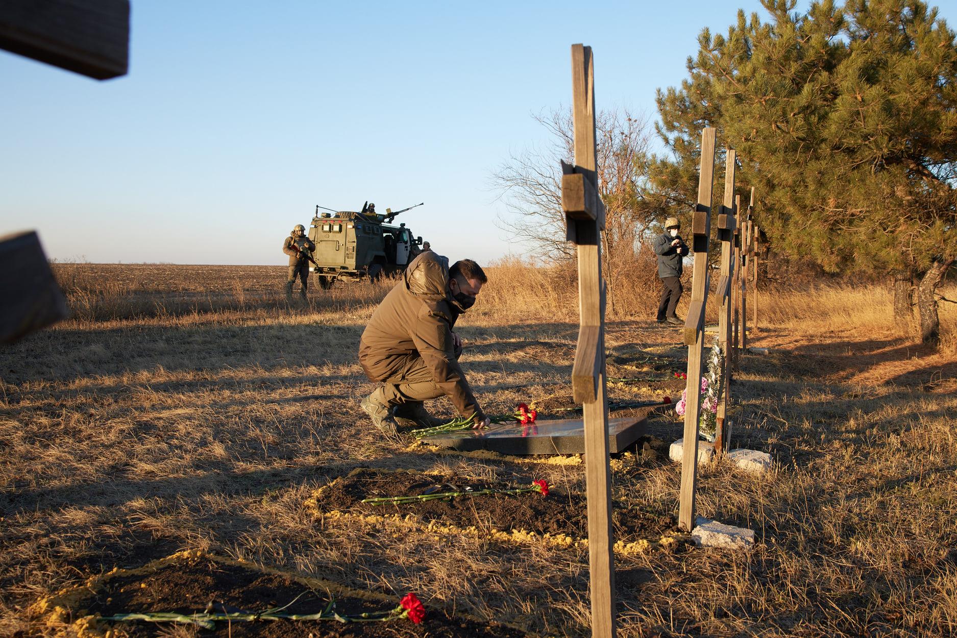 Володимир Зеленський оглянув бойові позиції та ознайомився з умовами несення служби. Глава держави вшанував полеглих героїв на символічній алеї пам’яті, облаштованій на місці загибелі бійців.