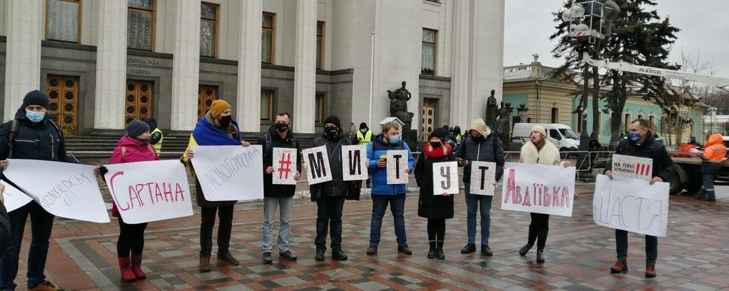 Під стінами Верховної Ради зібралися на мітинг представники прифронтових громад Донеччини та Луганщини на акцію "Ми тут. На лінії зіткнення".