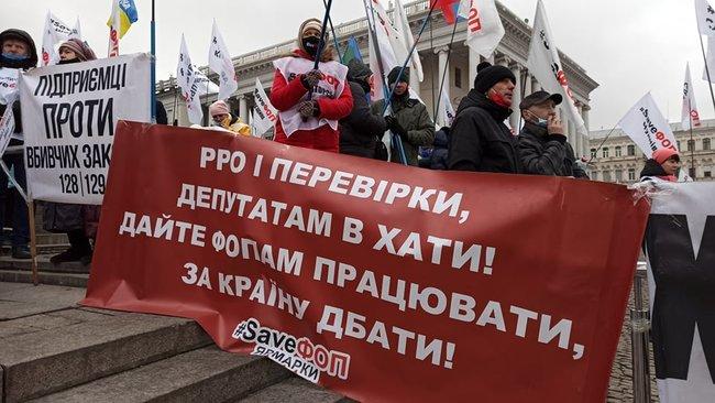 Організатором акції виступає рух SaveФОП. Підприємці вимагають не закривати малий і мікробізнес на карантин, не вводити касові апарати для більшості категорій ФОП, прийняти закони про спрощену систему оподаткування.