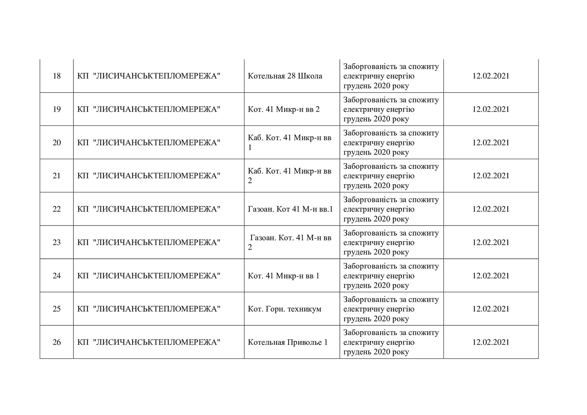 Згідно з листом ТОВ "ЕНЕРА СХІД", причиною знеструмлення є заборгованість "Лисичанськтепломережі" за спожиту електроенергію за грудень 2020 року.
