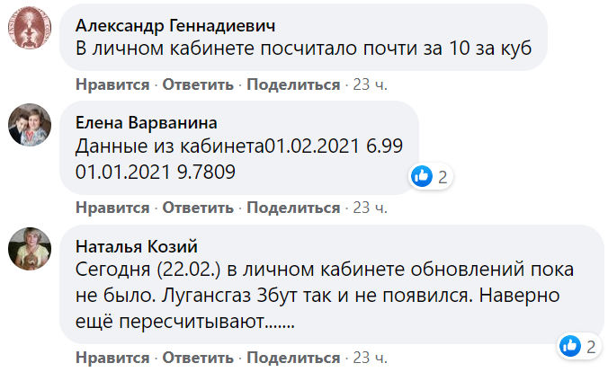 Два тижні тому про коригування ціни з 1 січня до 6,99 грн оголосив і ТОВ "Луганськгаз Збут" . Однак подальші дії компанії незрозумілі, оскільки на сьогоднішній день цього повідомлення на сайті вже немає.