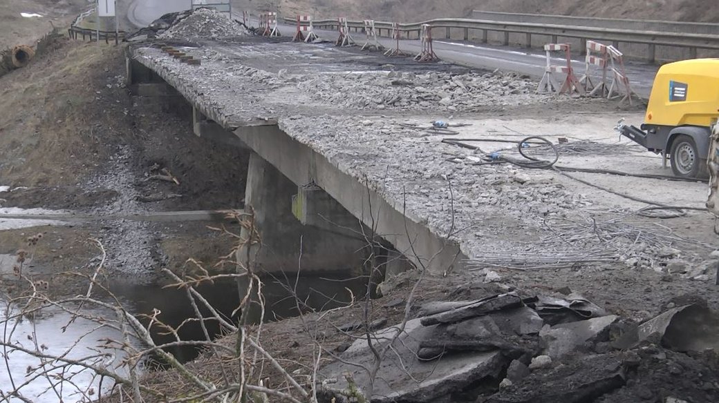 Обвал стався на краю закритої на час ремонту смуги руху, тому автомобілі на даний момент можуть безперешкодно проїхати через міст.