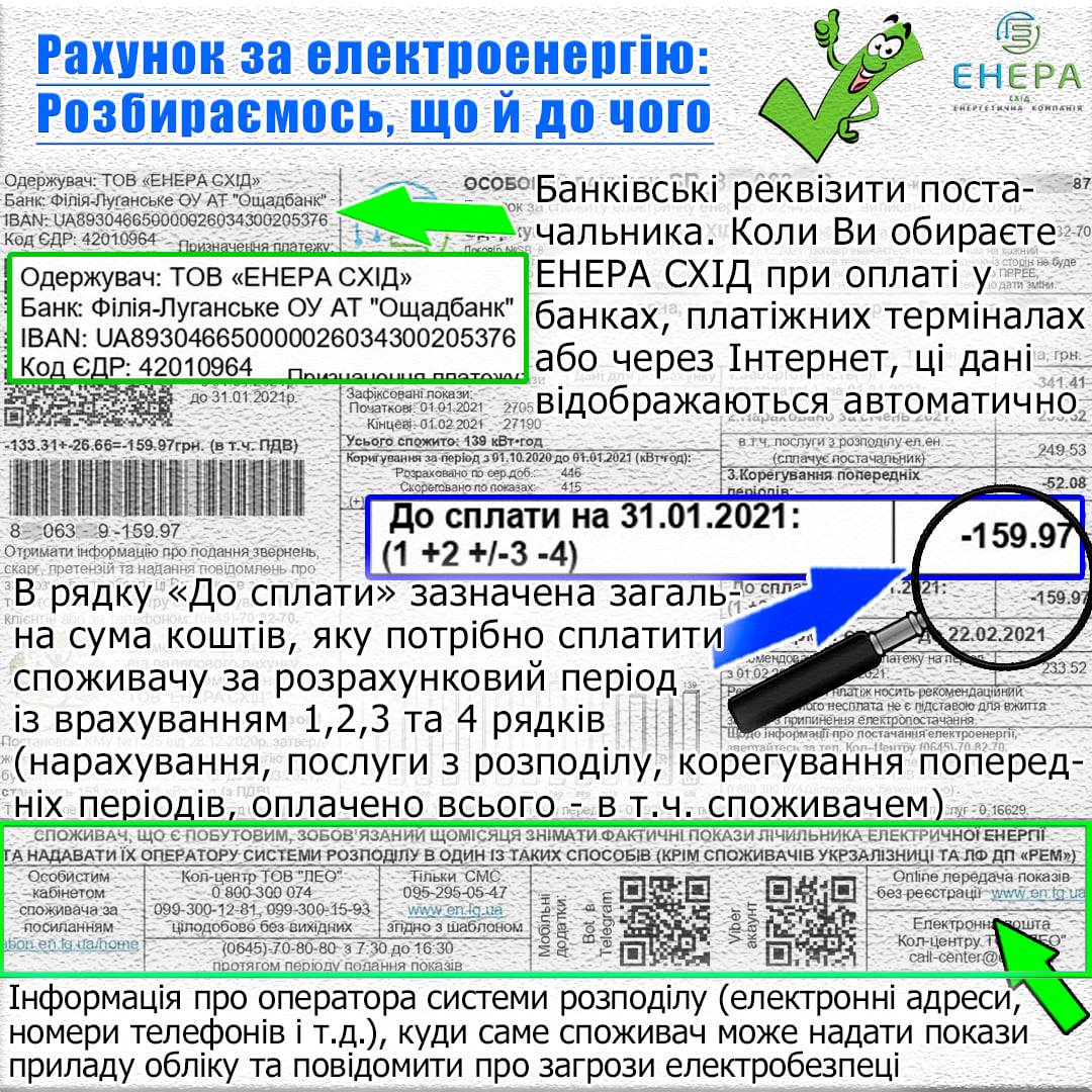 ТОВ "ЕНЕРА СХІД" оприлюднило детальне роз'яснення інформації, яка міститься у рахунках, що мешканці області отримують щомісяця.