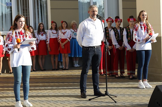 Керівник Сєвєродонецької міської ВЦА Олександр Стрюк привітав присутніх з Днем вишиванки та нагадав: «Вишиванка є символом нашої української духовності. Вишиванка передається з поколінні в покоління і є основним оберігом, який створила мати, створила дружина, створила бабуся. Надзвичайно приємно, що і Сєвєродонецьк сьогодні майорить та квітне вишиванками. Бажаю всім нам миру, щастя, здоров’я, благополуччя, натхнення та позитивних емоцій – і в цей святковий день, і щодня!»