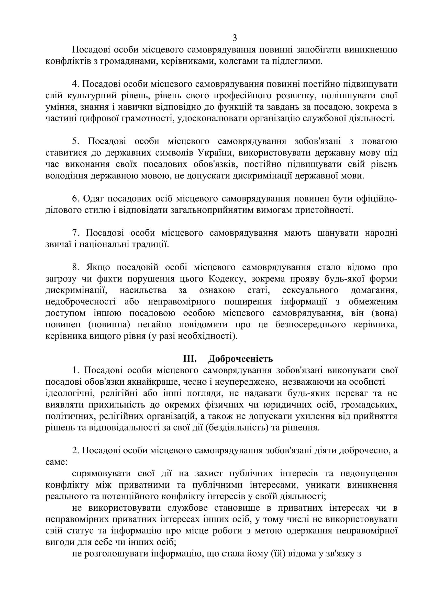 "Посадові особи місцевого самоврядування, у тому числі в поза робочий час, повинні утримуватися від поширення інформації, зокрема розміщення коментарів на вебсайтах і у соціальних мережах, яка може завдати шкоди репутації державним органам та органам місцевого самоврядування", - йдеться в документі.