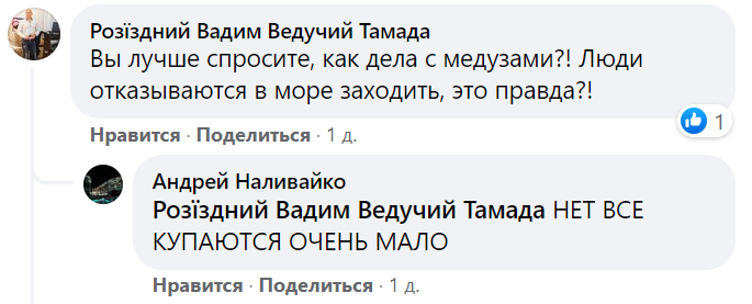 Хоча в мережі з'являються відео, на яких показана пристойна кількість медуз. Ці кадри, за словами автора, були зняті в Щасливцево: