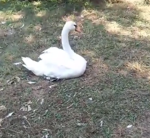 Орнітологи вже придумали ім'я для лебедицi - Пломбір. Вони відзначають, що птах вже звик до проживання в центрі і виходить на прогулянку.