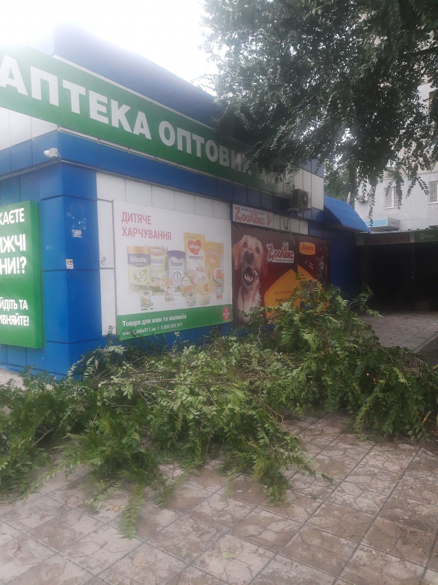 "Реально потрібно бути обережним зараз! При такому вітрі гілки ламаються на раз-два! Ось приклад. І таких прикладів по дворах безліч. Бережіть себе!", - пише автор фото.