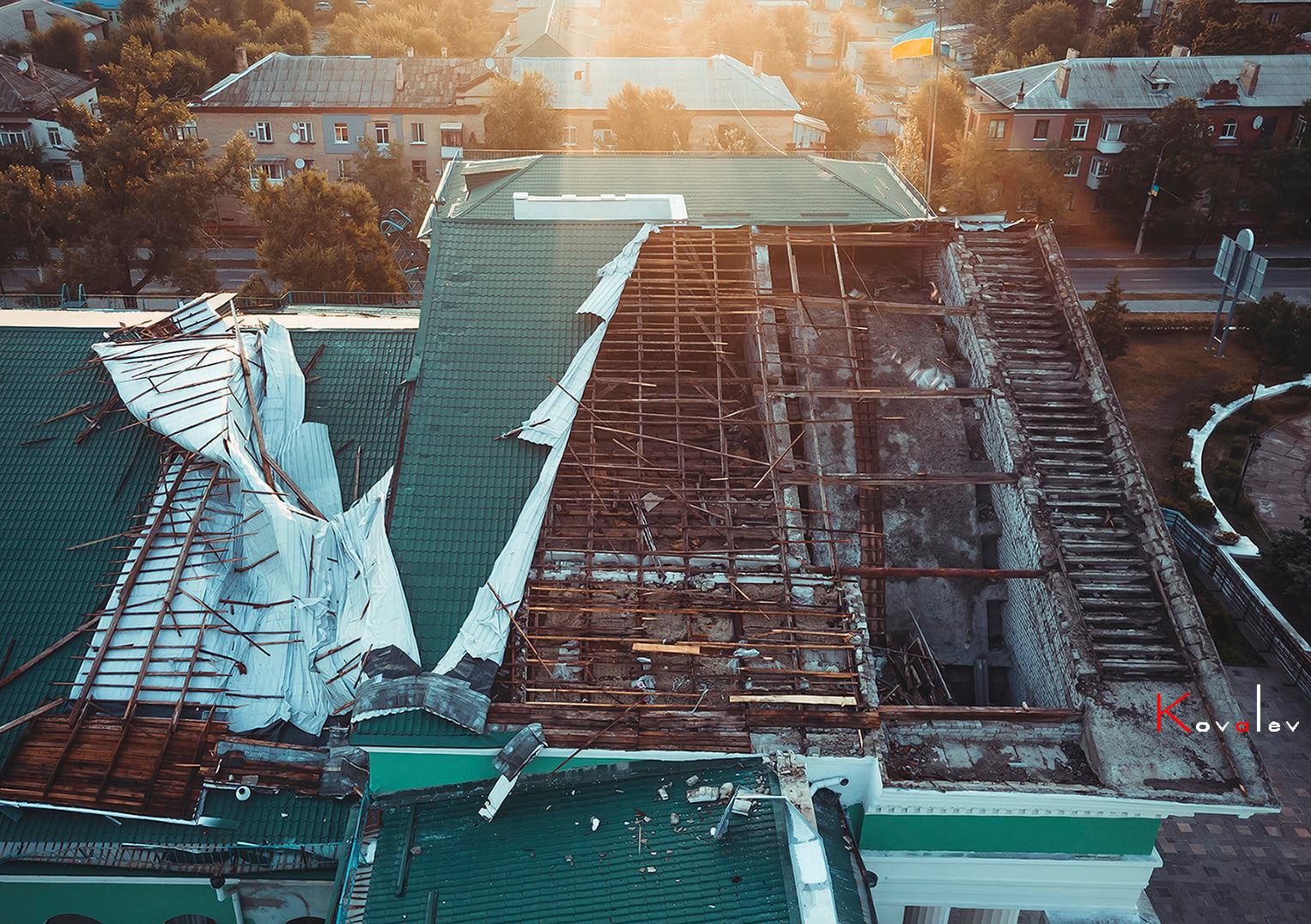 Як можна помітити на фото, ДК тепер залишився фактично без даху. Жителі міста вважають, що причина - не тільки негода.