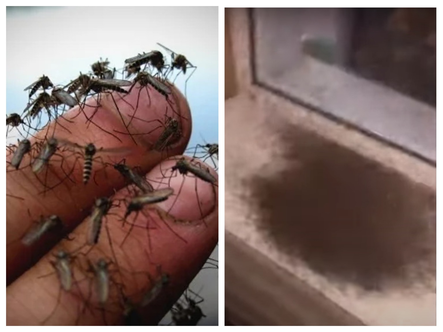Опубліковано зняте очевидцями відео того, що твориться з комарами в Кирилівці: купа мертвих комах лежить на підвіконні, безліч їхніх ще живих родичів літає по кімнаті.