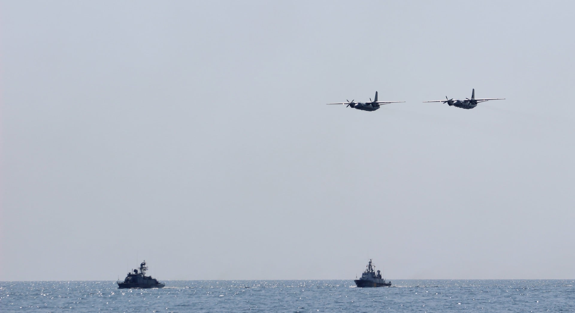 У параді брала участь морська авіація, літаки легкомоторної цивільної авіації продемонстрували фігури вищого пілотажу.