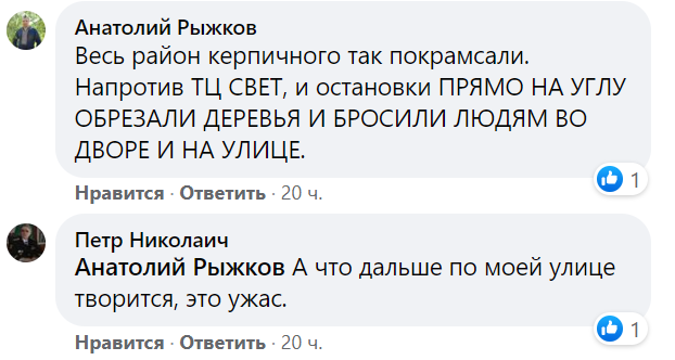 У коментарях лисичани заявили, що таким же чином пошматували дерева по всьому району Кирпичного, подекуди обірвавши інтернет-дроти.