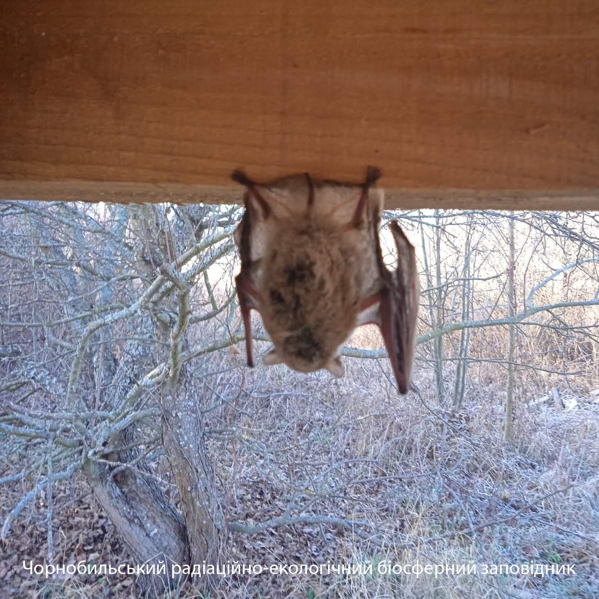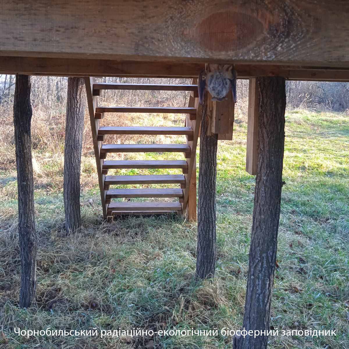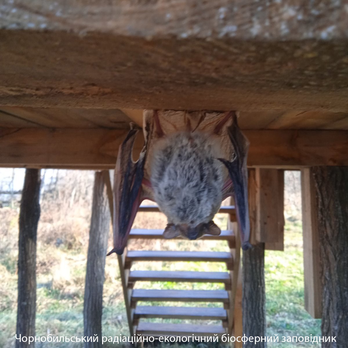 На сторінці заповідника у Фейсбуці показали фото нетопиря білосмугого, що вмостився просто під дерев'яною вежею для спостереження за птахами. Співробітники заповідника гадають, що кажан, можливо, зібрався там зимувати.