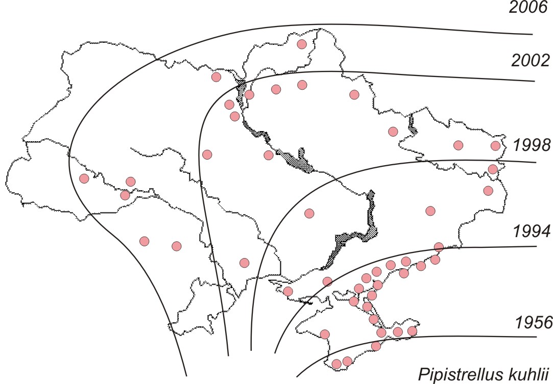 З роками ареал проживання нетопиря білосмугого поступово поширювався на північ.