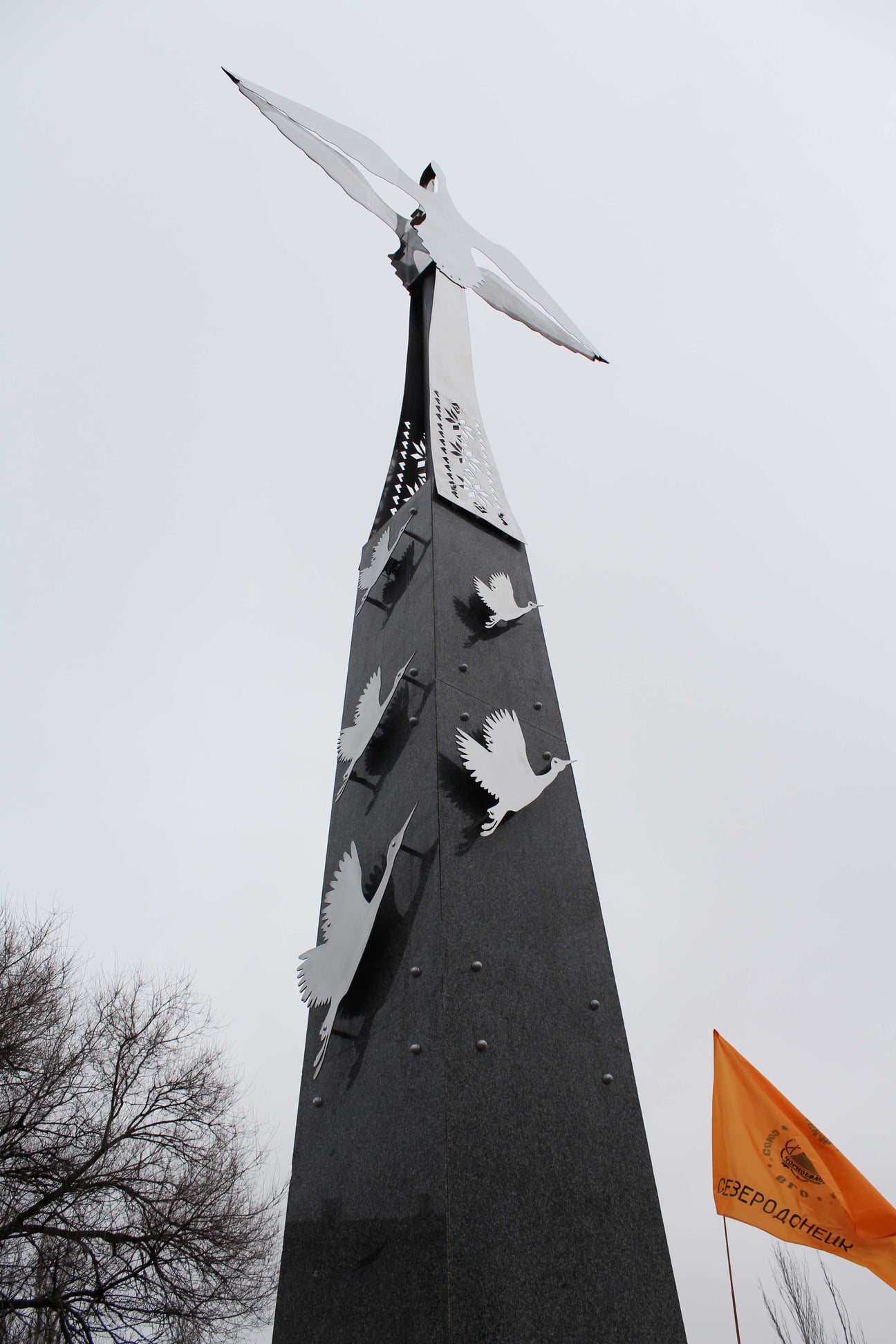 Переможцем конкурсу на кращий проєкт пам’ятника «Героям Чорнобиля» визнано громадську організацію «Ветерани Чорнобиля м. Сєвєродонецька», голова якої Алевтина Фіалковська. Пам’ятник під девізом «Журавлик» – скульптура журавля, що злітає в небо та рушник. Журавель, що злітає в небо – це пам'ять про чорнобильців, рушник – це символ України.