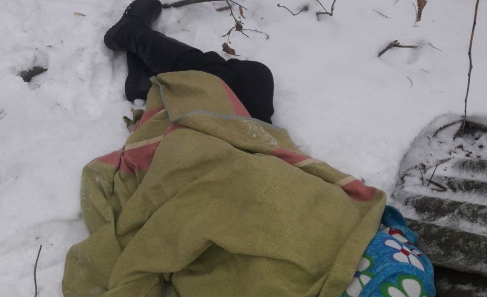 У дворі неподалік він виявив літню жінку без свідомості, що лежала на снігу. Вона була легко одягнена, поруч лежала ковдра.