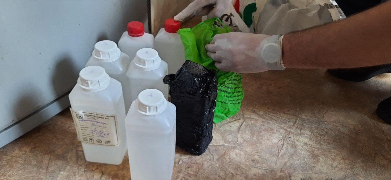Під час проведення санкціонованого судом обшуку за місцем проживання сєвєродончанина, співробітниками поліції було виявлено та вилучено лабораторний посуд, спеціальне приладдя, різного виду прекурсори та багато інших речей та предметів, які використовувалися для синтезу психотропної речовини.