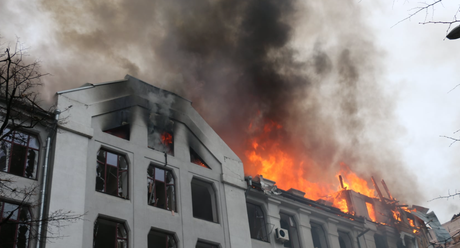 Близько 8-ї ранку центр Харкова піддався масованій ракетній атаці. Ракети вразили 2 адміністративні будівлі, котрі загорілись. Площа пожежі склала 600 кв.м. Під час проведення аварійно-рятуальних робіт бійці ДСНС врятували 10 людей з-під завалів. На жаль 4 чоловіки загинули", - повідомили у ДСНС.