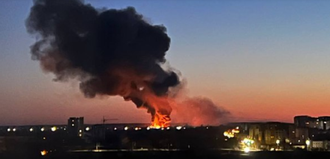 У Луцьку о 05:45 також прогриміло кілька сильних вибухів. В результаті виникла пожежа, дим високо піднявся над містом.