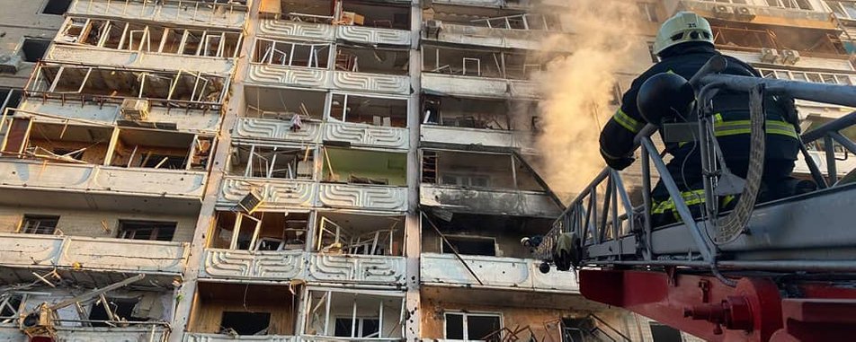 Також боєприпас потрапив в десятиповерховий житловий будинок в Подільському районі, в результаті чого сталося загоряння з 1 по 5 поверхи. О 06:51 пожежу вдалося ліквідувати. Підрозділ ДСНС врятував одну людину, яку госпіталізували до лікарні.