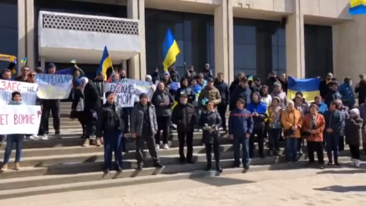 28 березня мешканці Енергодара зібралися на мирний мітинг. На площі біля палацу культури «Сучасник» пролунав Гімн України.