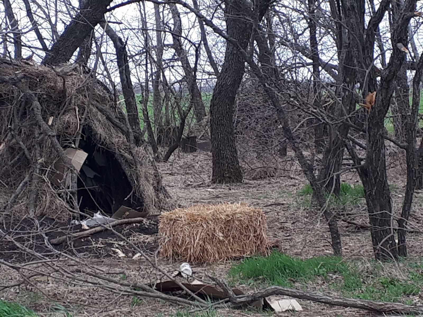 Це імпровізована "хатинка" з гілок, соломи та шматочків картонних коробок, повідомляє Час Пік з посиланням на Facebook Негулевського.