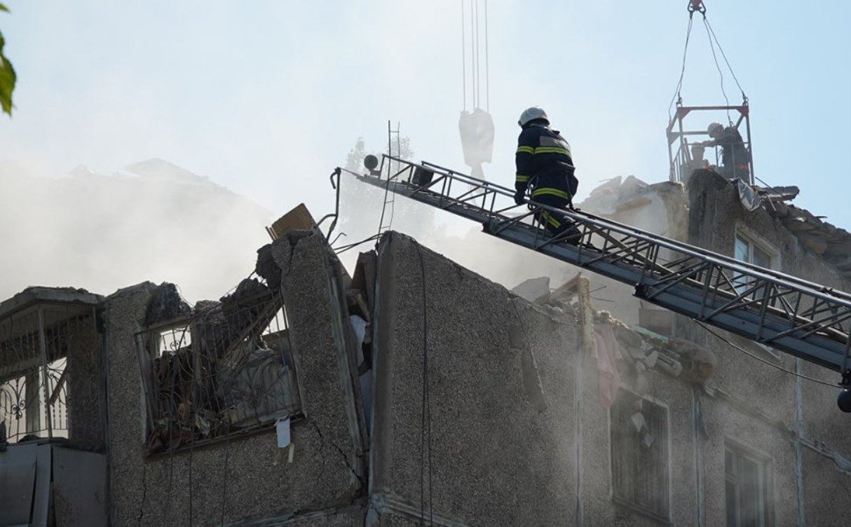 У ДСНС повідомили, що у п'ятиповерховому житловому будинку зруйновано з 3 по 5 поверхи. Також зруйновано близько 10 гаражів.