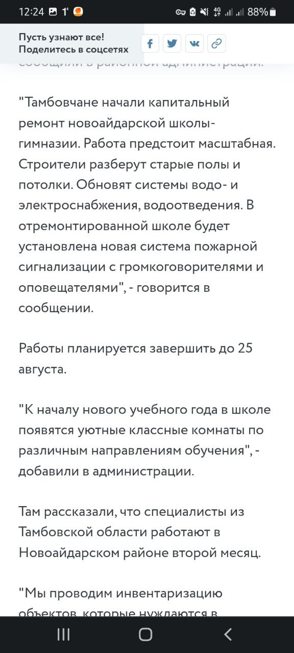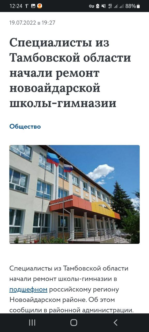 В одному з російських ЗМІ з'явилася інформація про те, що будівельники з Тамбова нібито займатимуться капітальним ремонтом Новоайдарської школи-гімназії, передає Час Пік.