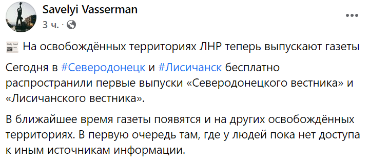 У так званому "мінзв'язку ЛНР" обіцяють розпочати розповсюдження газет і на інших захоплених територіях.