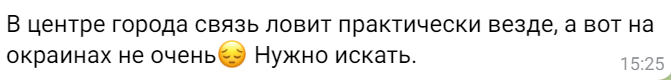 Як повідомляється, зв'язок ловить "сильно місцями", зокрема в центрі Лисичанська можна зловити мережу, а на околицях дуже складно.