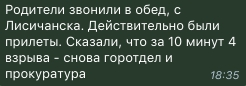 У регіональних чатах у Telegram також з'явилася інформація про те, що у Лисичанську стався сьогодні вибух.