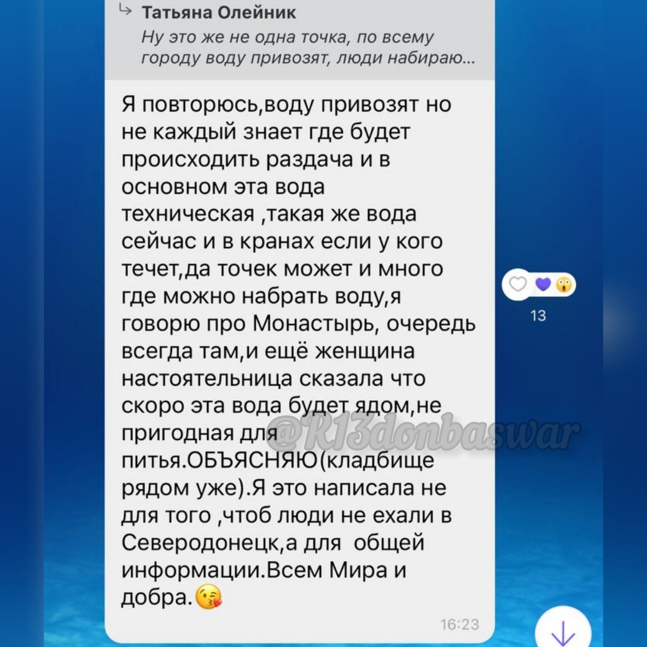 За словами людей, які знайомі зі ситуацією в Сєвєродонецьку, майже вся вода в місті - привізна і, як правило, технічна. Графіку підвезення води немає.