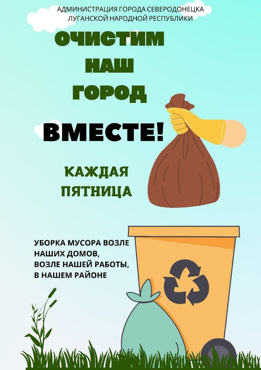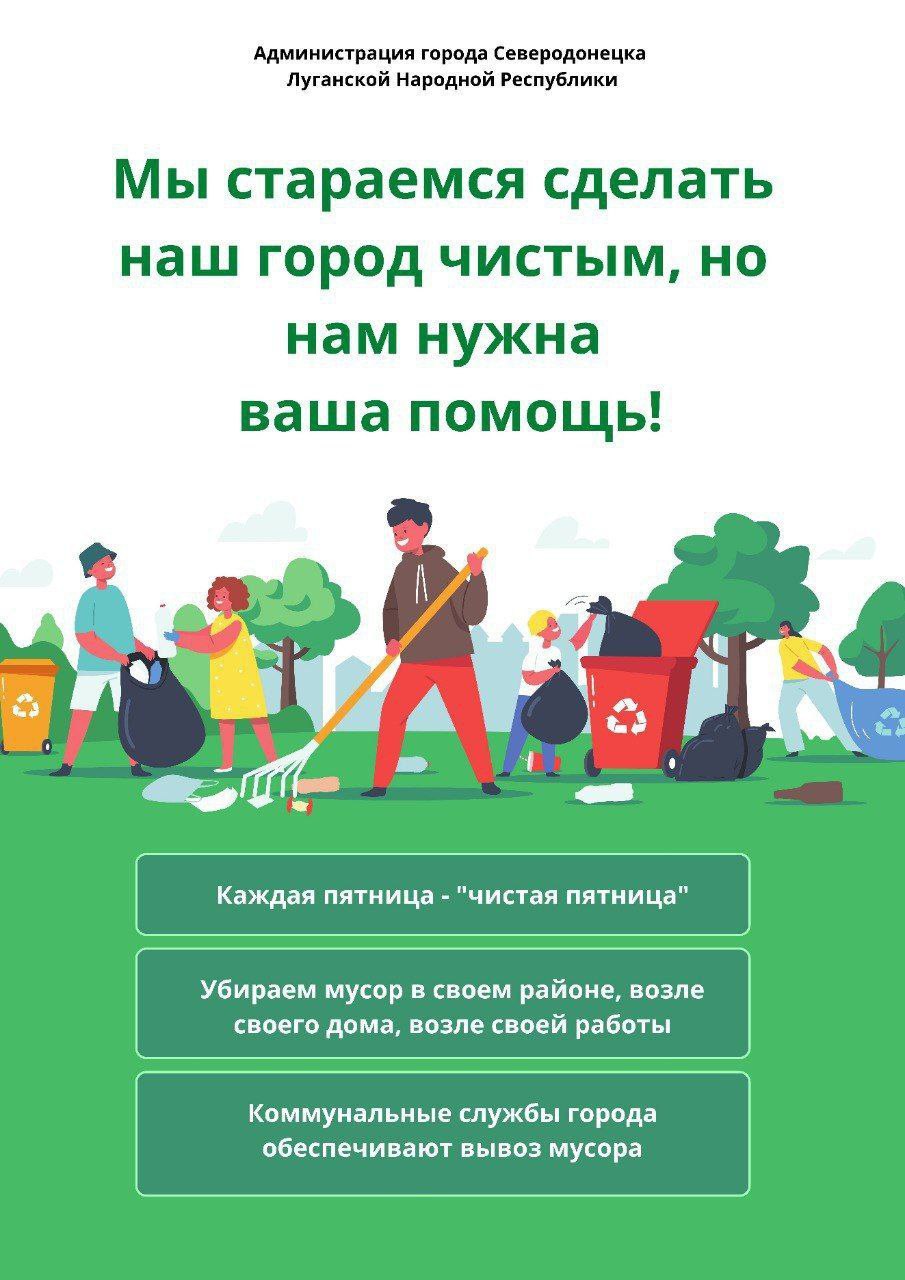 Крім того, щоп'ятниці мешканці Сєвєродонецька мають виходити на прибирання територій біля їхньої роботи. Вивіз сміття та відходів забезпечать комунальні служби.