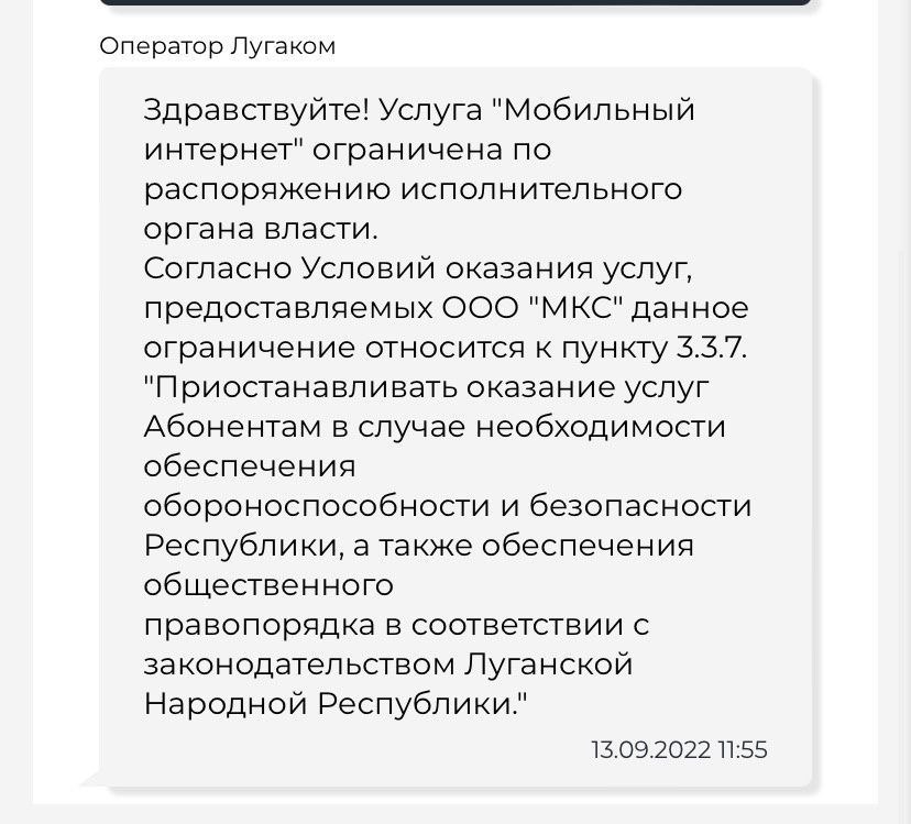 Оператор "Лугаком", що діє на окупованій території Луганської області, попередив абонентів про обмеження послуги мобільного інтернету.