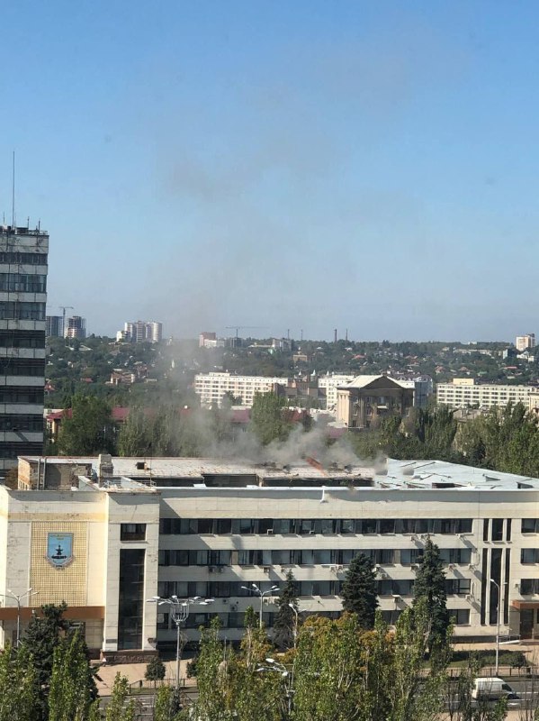 Регіональний Telegram-канал "Дежурний Донбасом" повідомляє про пошкодження адмінбудівель у центрі міста, передає Час Пік.