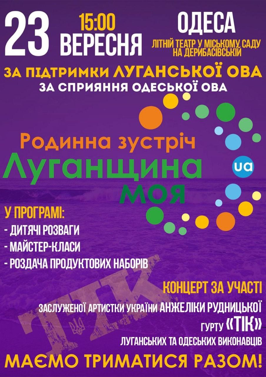 У п'ятницю, 23 вересня, в Одесі за підтримки Луганської ОВА відбудеться сімейна зустріч "Луганщина моя".