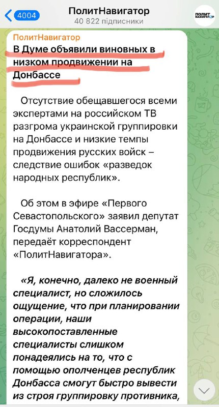 У Держдумі РФ знайшли винних у провалі "спеціальної військової операції" в Україні. Це "розвідки народних республік", які постачали Росію неправильною інформацією.